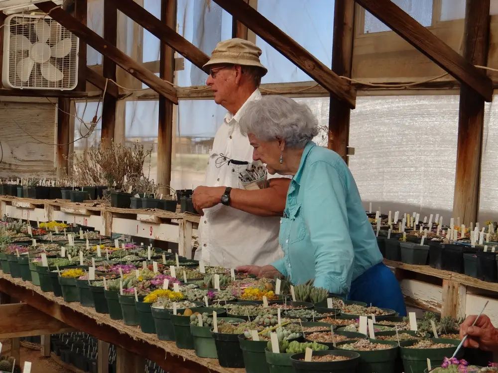 Steven Brack (our host) and Beverly Rowe inside one of the greenhouses (02/58)