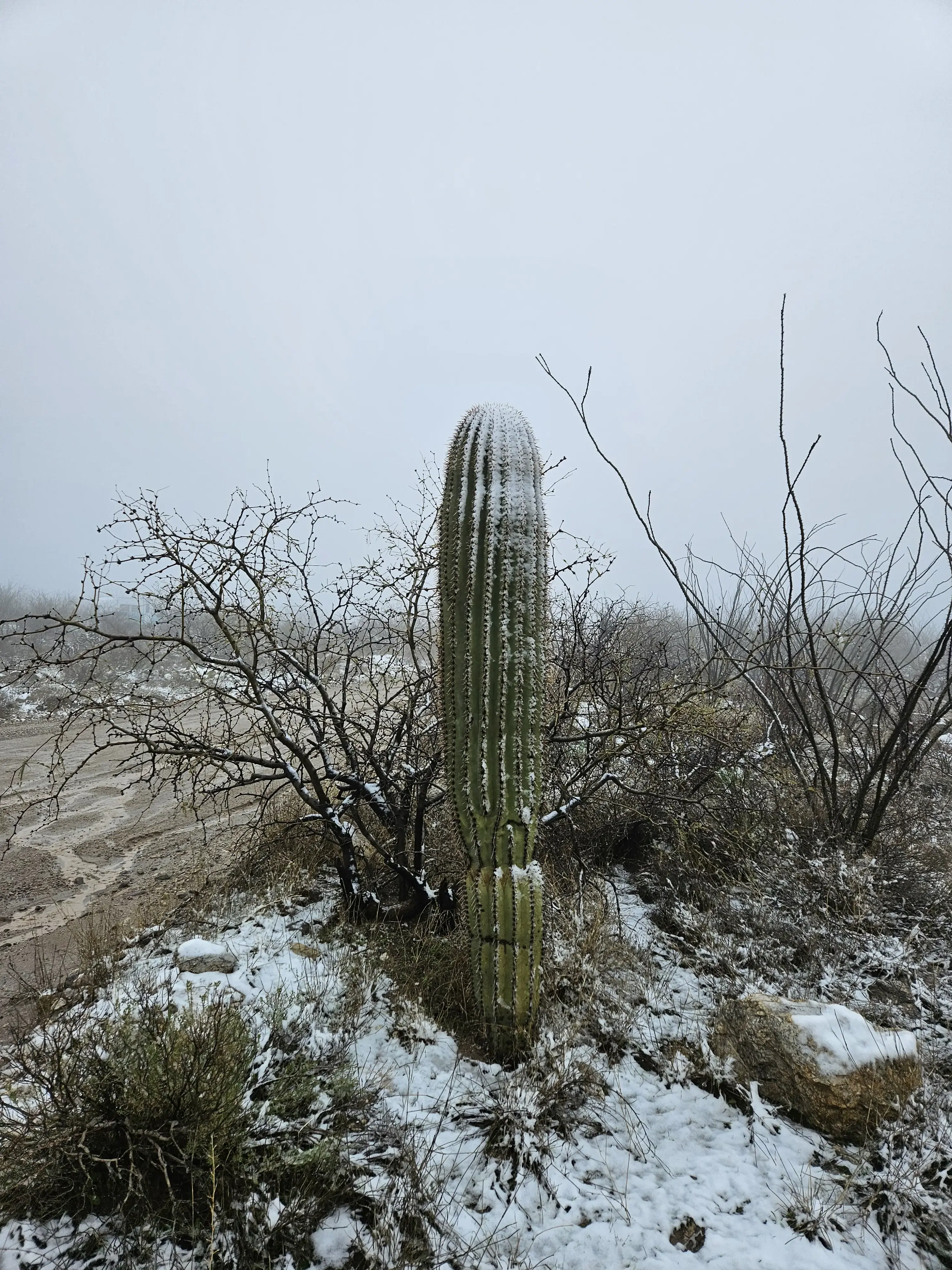 A snow-covered saguaro in the mountains outside Tucson, right on the edge of their elevation limit (3/4)