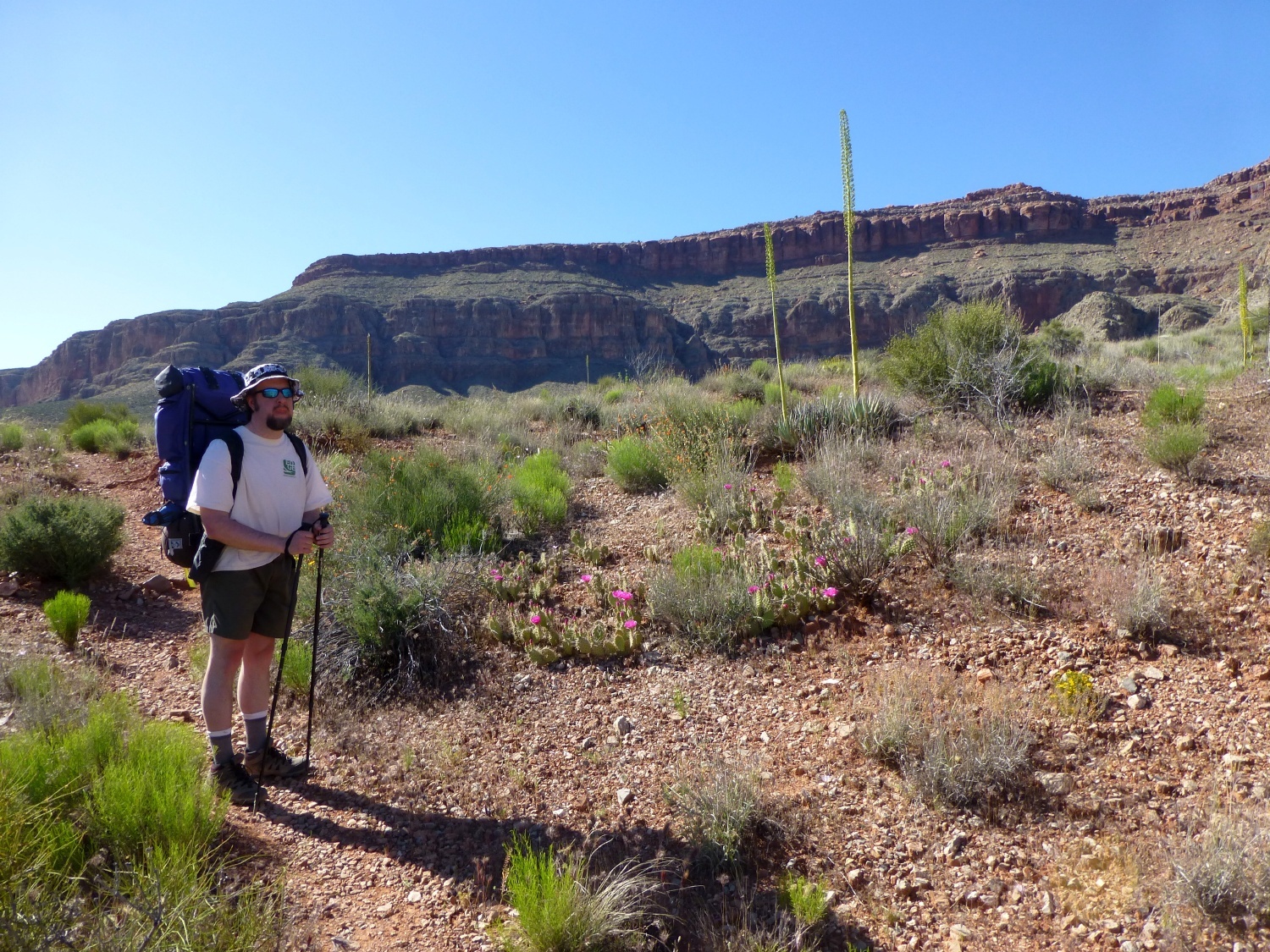 Jason Peters with some cactus and agave flowers in Surprise Valley (08/14)