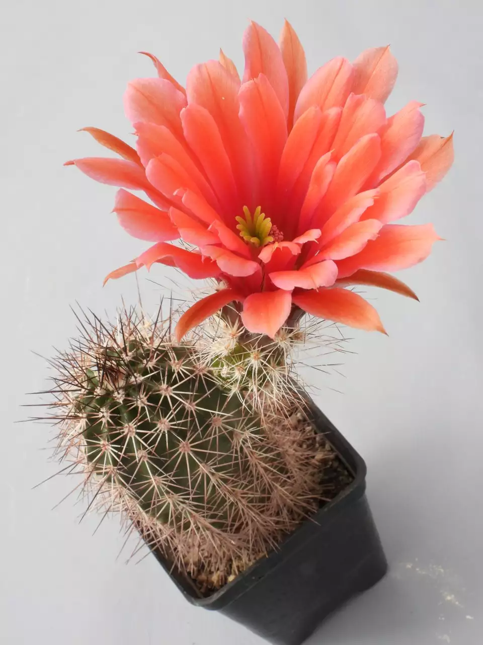 Same seed batch as the previous plant. When you make hybrids you can't expect a uniform result. Evolution has not yet started on the plant. The flowers of the previous plant and this plant are quite different. The pot is 2.5" (6 cm) on a side. (11/40)