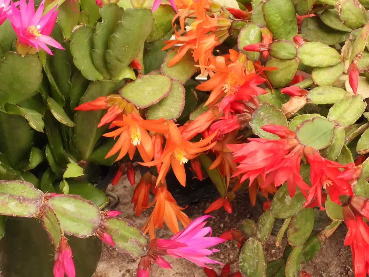 A true "Easter Cactus." I did nothing special for my several plants, and they were all in flower for Passover, Easter, and Orthodox Easter. The flowers of this species last longer than Christmas cactus flowers, I think. It's also listed in the genera Schlumbergera and Hatiora (22/40)