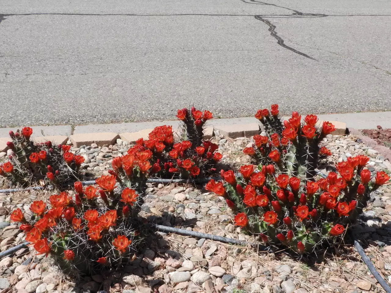Echinocereus triglochidiatus "White Sands"     5/24/22 This is about the high point of the flowering of this species this year. (38/56)