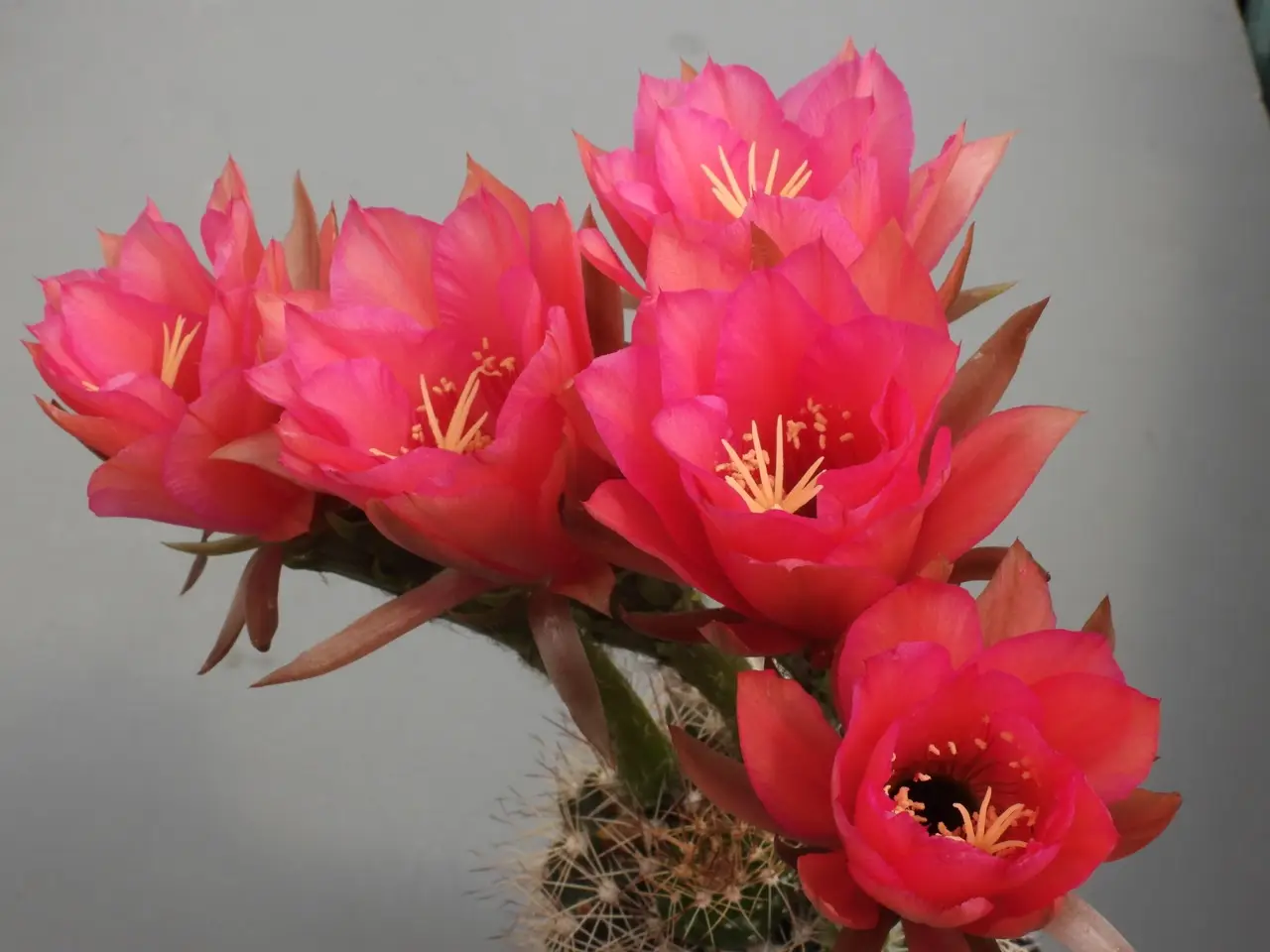 Echinopsis mammillosa kermesina     6/9/22 Flower colors in my plants range from pinkish magenta to reddish magenta. "Kermes" means "rich red," but I've not seen a flower in my plants I'd call rich red. (12/48)