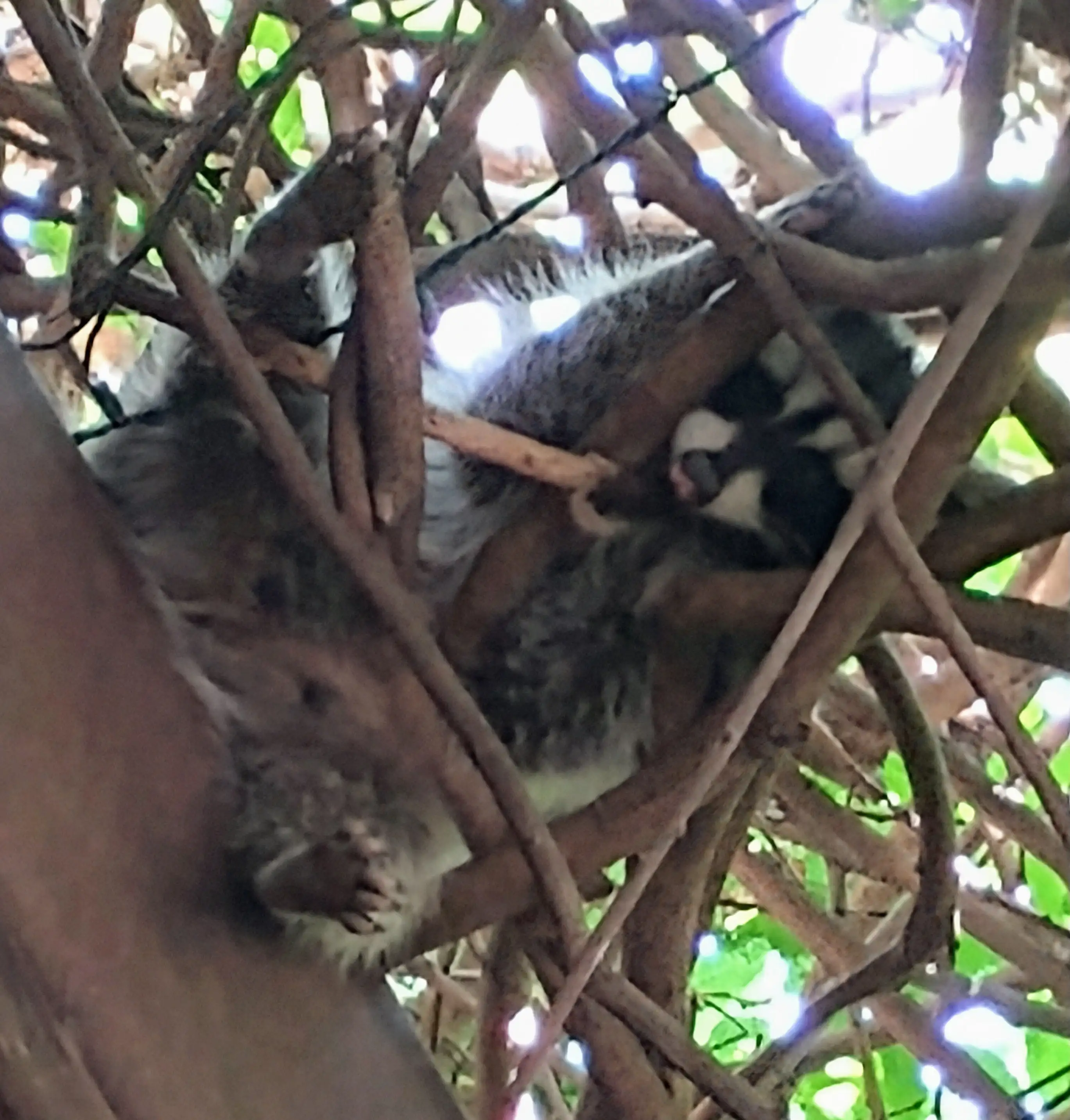 Lots of visitors at the Botanic Garden -- a raccoon in the ceremonial garden (10/10)
