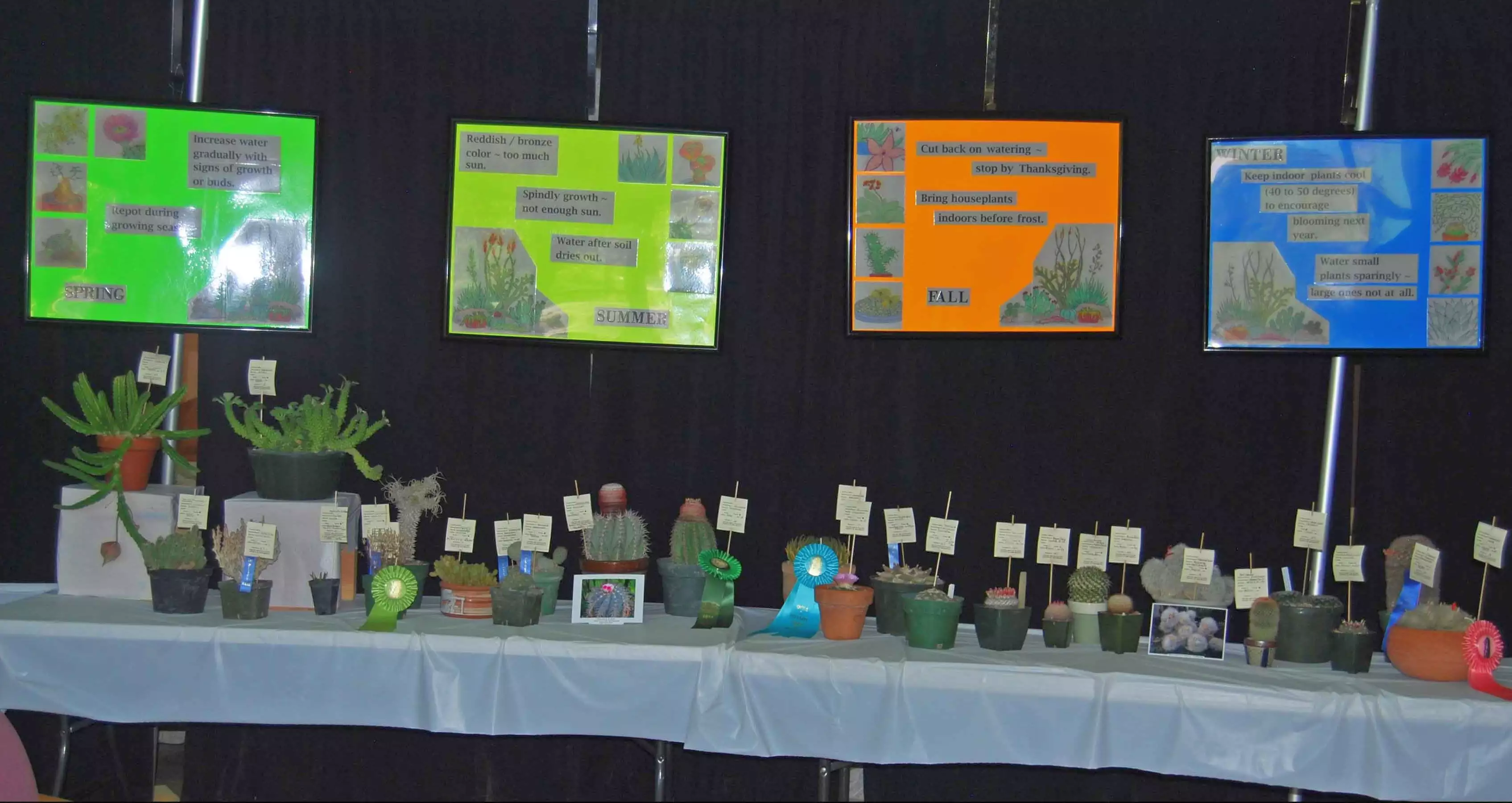Cacti & succulents on exhibit with seasonal care poster display (04/19)